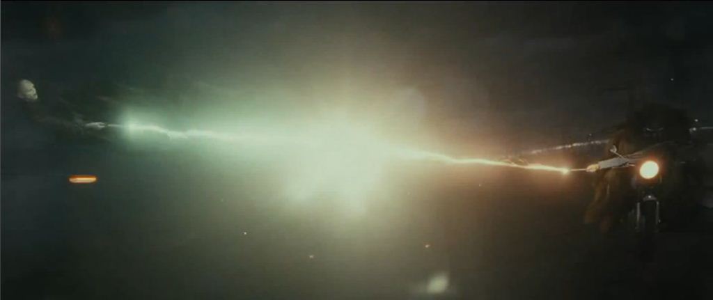 The flight attack takes place in a phrenetic sequence flying over London to escape the Death Eaters. MPC created GG thestrals “a winged horse with a skeletal body”, extended Privet Drive’s set and combined the green screen riders with the CG thestrals and digital doubles. To create the clouds, they used Maya Fluids and then joined the far and near clouds, using different techniques to render it. The spells were created to look like a lightning inside the cloud and also used were some lens flares. The duel between Voldemort and Harry when their wands get connected and then Voldemort’s wand broke up was created using full CG Smoke and using both a digital double and the real actor.