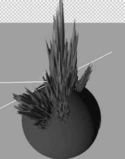 Choose Reflected Black and white Gradient Tool. Keep Quick Mask pressed. Find craters 3D shape in the bottom layers and load selection for this layer. Take large soft translucent white Brush Tool and touch the bottom part of selected area. Choose Select > Deselect.