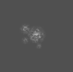 Add Layer Mask to this layer and fill it with Radial Black and White gradient from center to edges. Then make several copies of created layer. Apply random Scale, Rotation transformation for each copy and set smaller amount of Opacity – around 40-60%. Light colors are creating heights of the mountains and spots with smaller Opacity parameter making them lower. Group the clouds layers and set opacity for the group folder around 75%. Merge all texture layers and add Gaussian Blur effect, Filter > Blur > Gaussian blur ~2px. We need to make very smooth and low contrast image. You may check out the result with the high contrast texture on the last two screen shots.
