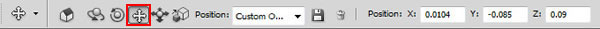 Apply Camera position settings the same as for all previous shapes. Move, scale and rotate the 3D shape to find better position. You may find how it looks like in the main Photoshop document on the second screen shot. Apply "Snow" texture for Diffuse and Bump settings. Upload "lights_planet2" preset for this shape. Pay attention to the new light source – blue reflection from the water sphere.