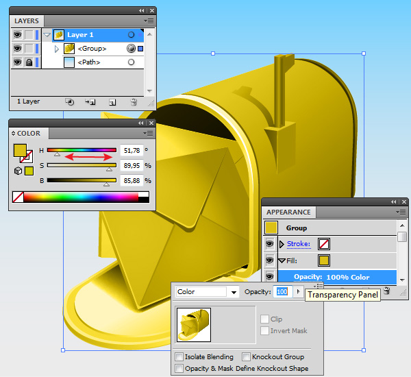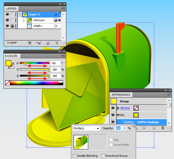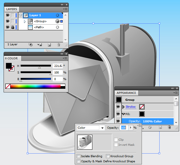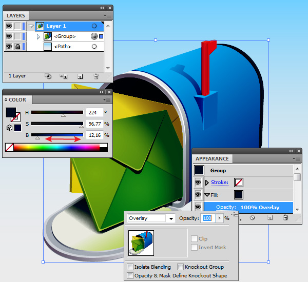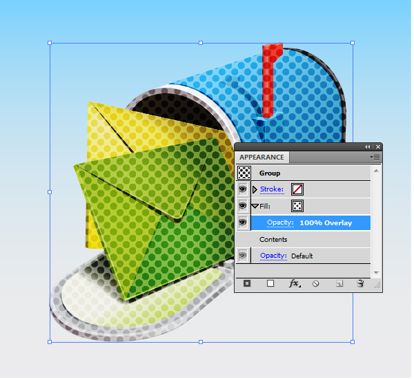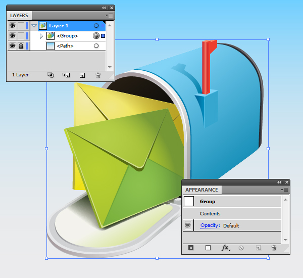 In the examples, I will show you how to adjust the colors of the mailbox without changing other objects such as background, with the help of the Appearance panel. Before starting our work, group all the objects you want to adjust the colors of.