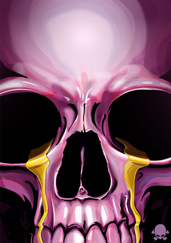 Q Your style of illustration is extremely bright, vivid and colorful, yet at times it can be rather morbid. What made you pursue that sort of style? How much work goes into creating the one artwork?