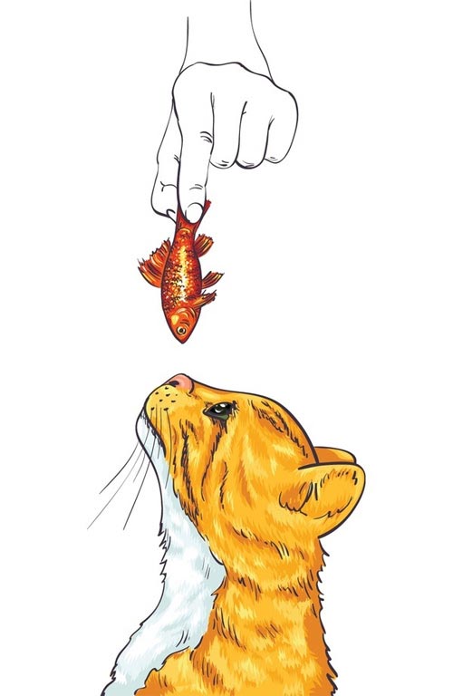 12. Red cat and fish, illustration