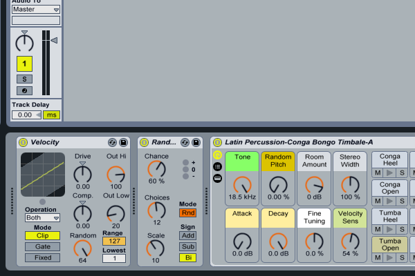 In this tutorial we are going to build our personal crazy percussionist in Ableton Live. If you have ever tried to program a living percussion groove in your DAW you already know how hard it is to achieve this living style played by a real percussionist. Different notes, velocity… Get rid off static sounding patterns and let some random in your heart.