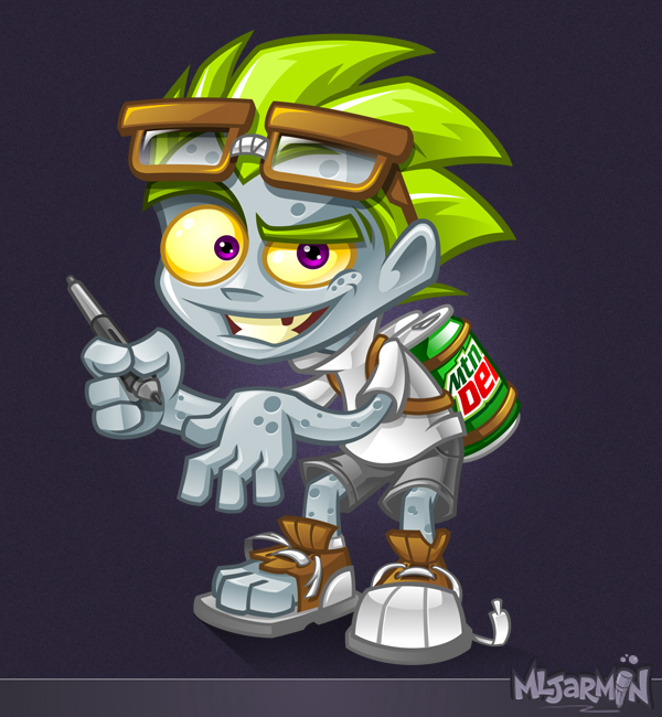 MOUNTAIN DEW! 😀 It has always been my fuel for ideas, inspiration and of course staying up late at night. My teeth is yellow and I bleed green. That’s how I love the DEW that much. I’ll create them a HyperActive Zombie mascot in exchange for a year or lifetime supply. Oooh!