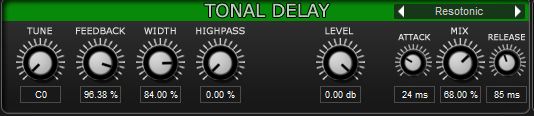 The last two effects are the reverb and tonal delay. Tonal delay creates some messiness and some dirt. The reverb only serves as a spacer. It gives some room and breath maybe a bit of shine.