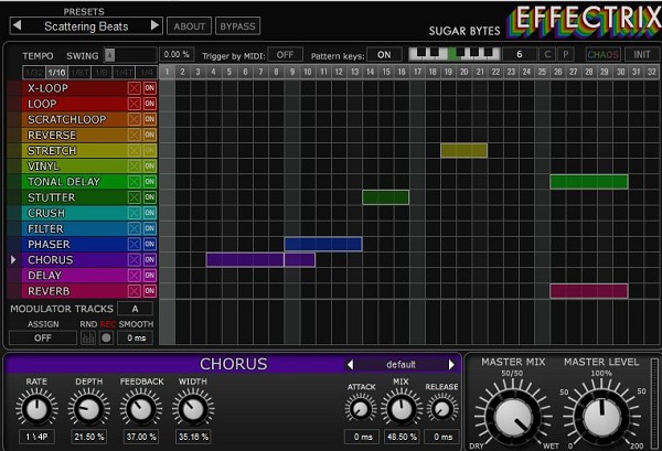Effectrix has several effects at your disposal. I found the phaser, the chorus, the stutter, the tone delay and the reverb the most suitable for my style. The other tools are really great, but I wouldn’t like to use too many of them because sometimes less is more.
