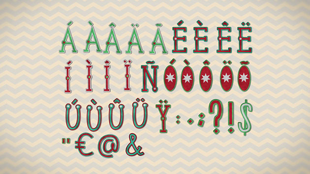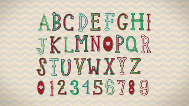 As you’re getting ready for Christmas, we’ve got a special little treat for you. All characters- alphabet, accented letters, symbols and numbers- were created with shape layers. Color controls have been applied to all of the characters making color changes very easy. The characters are animated using the Trim Paths shape layer operator which is editable in the slider control effect labeled “Animate On” in the Effects Controls panel.
