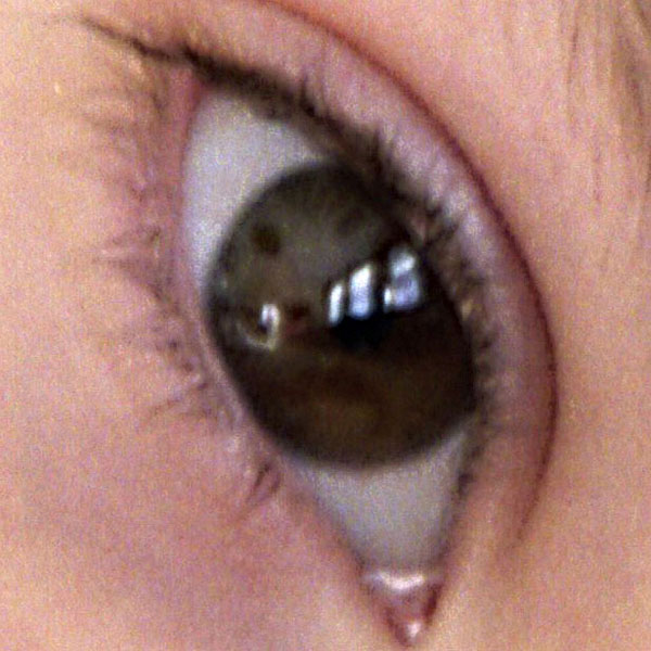 My cheap film scanner will scan a 6cm x 6cm negative at over 10,000 pixels across one side. That’s over 50 megapixels. There are a few digital backs and medium format-style digital cameras that can shoot 50 megapixel images, but they cost over $20,000 USD. The image below is a 100% crop of the previous image. You can actually count how many windows were in room by using the reflection in her eye.