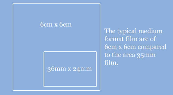 Finally, you’ll probably want a scanner to transfer your negatives or slides to your computer. Below you can see how medium format film compares to 35mm film.
