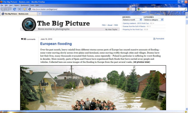 The Washington Post offers selections of photos covering one story at a time, in a similar fashion to the Boston Big Picture. The quality of the shots are extremely high, but what attracts me to this site is the collections of shots regarding sports, fashion and celebrity, where as the other sites focus more on world news.