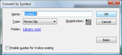 Now with the image selected, press F8 to convert it to a Symbol. Select “Movie Clip” in the type menu.