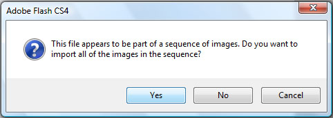 Now press Ctrl+F8 to create a new movie clip altogether. We aren’t naming this just yet. First we’re going to import the bitmap sequence inside this movie clip. Go to File > Import > Import to Stage. Select the first image of the sequence, which is called ” pred0001.jpg ” . Flash is going to ask if you want to import all images in this sequence. Click yes.