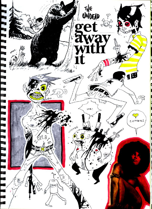 Don’t be afraid to make mistakes, and don’t erase them -I hardly ever use an eraser, as it’s important to keep a record of your mistakes and your successes, it’s a natural progression. You shouldn’t be too precious with your sketchbook, it’s really for your eyes only. it’s a good idea to make notes as you go, ideas that pop into your head should be written/drawn down for later. Even if the idea isn’t necessarily regarding the task at hand, that way your ideas are recorded and set aside so that your mind can be put back on course.