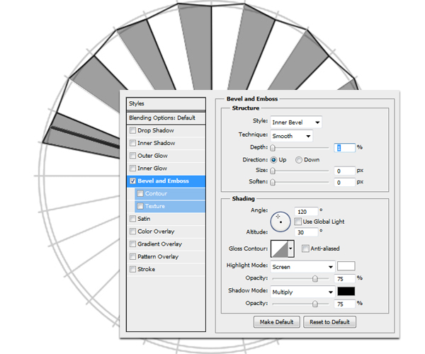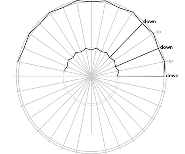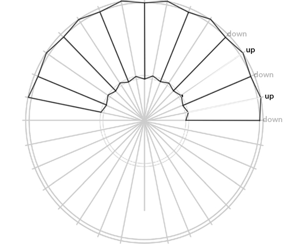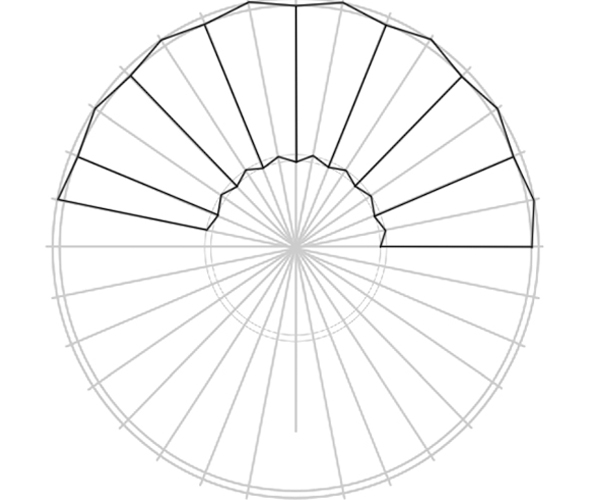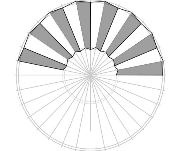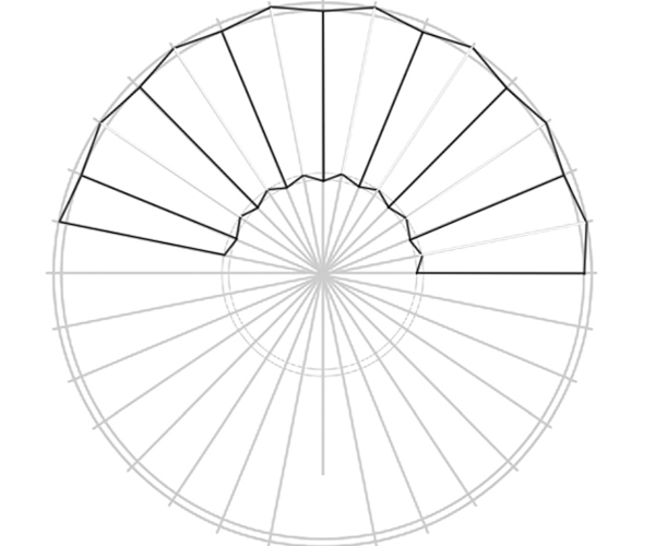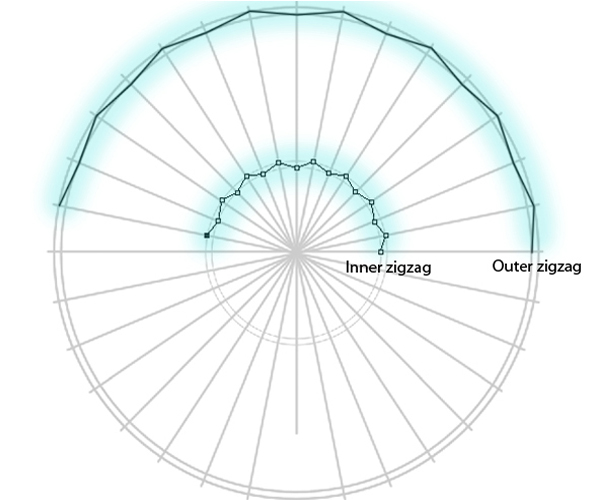 Next, add a new layer and name it as "Inner zigzag." Do exactly what we did in the "Outer zigzag" making sure to start from 0 degrees up to the 16th point.