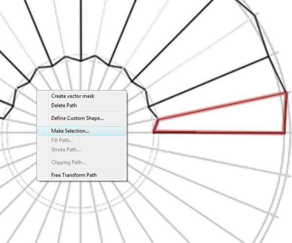 Add a new layer and name it "Sticks." Using the Pen tool (P), make a shape like as shown below. After that, right-click and select Make Selection from the drop-down menu.
