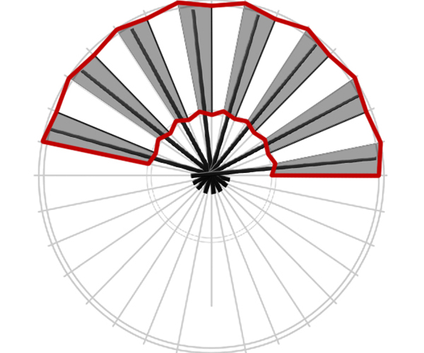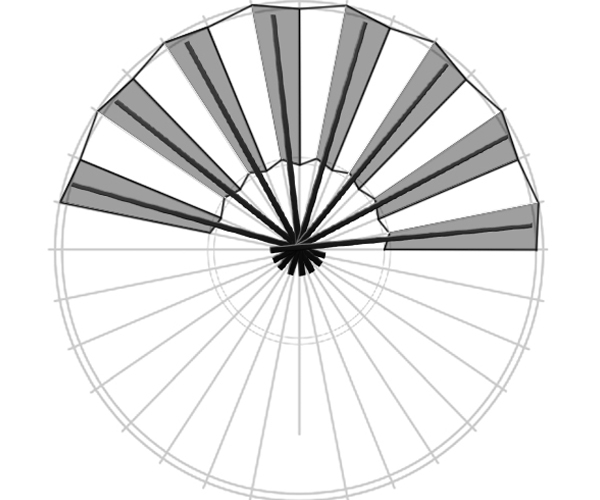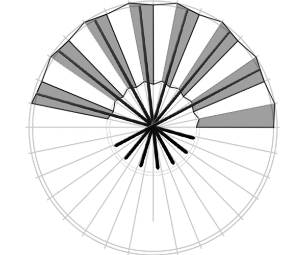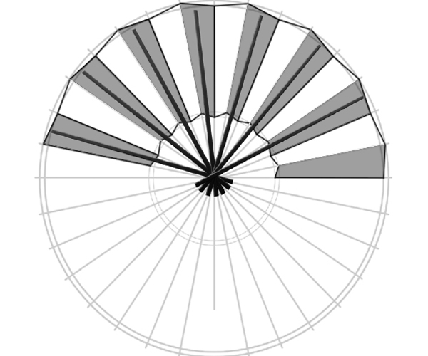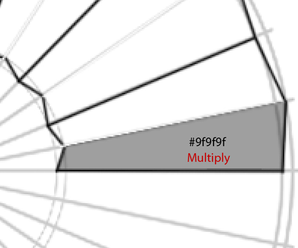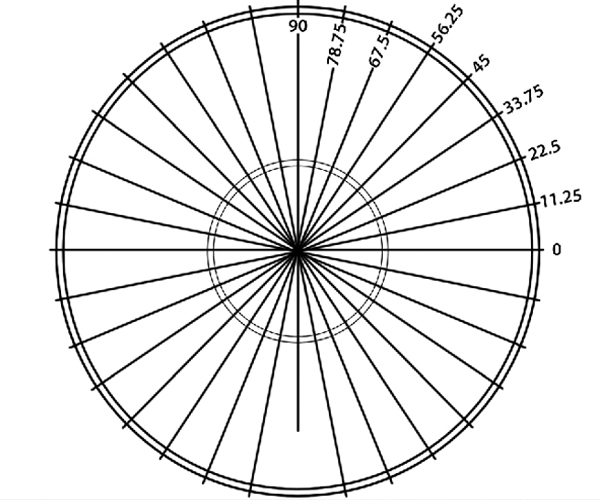 Using the Pen tool (P) make a set of lines (make sure to put every line on a new layer) following the indicated degrees, making a pizza-like diagram like as shown below.