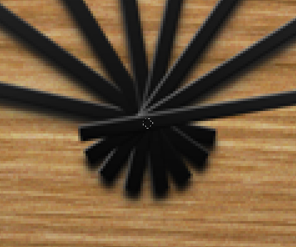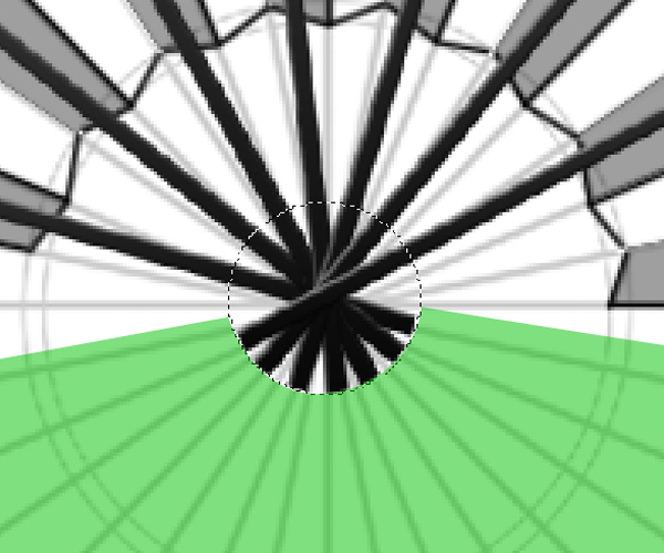 Add a layer mask in the "Sticks" group and use the Elliptical Marquee tool (M) to make a circle as shown below. Using the Brush tool (B) erase the areas indicated below using #000000.