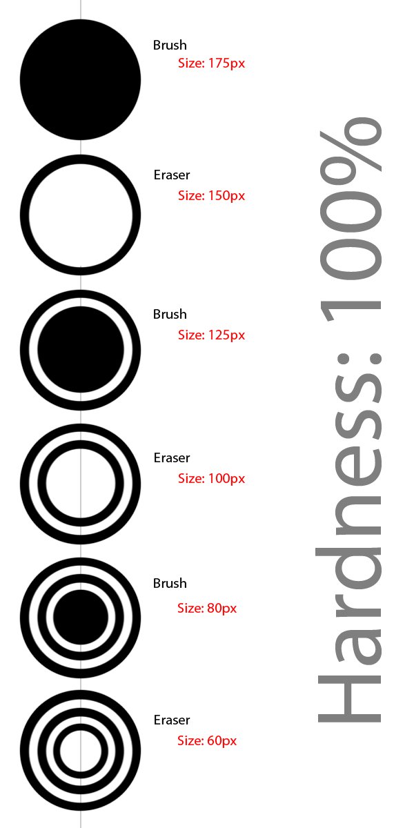 Add a new layer and name it "Circle". Using the Paint brush tool (B) and the Eraser tool (E) alternately follow the directions below.