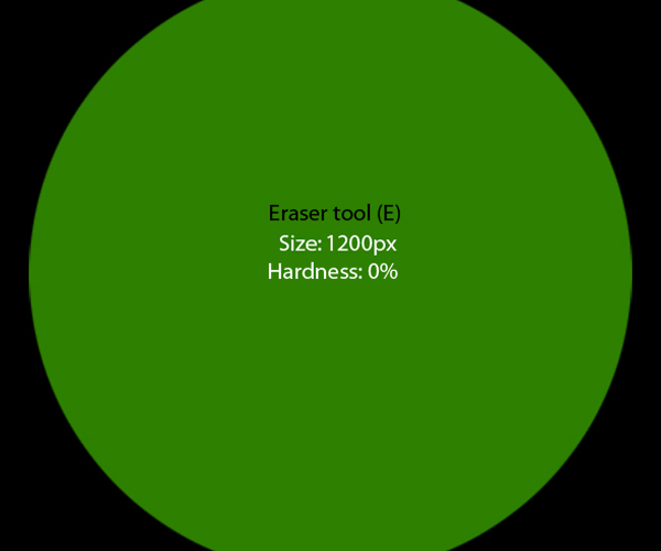 Next, add a new layer and name it "Shader." Using the Paint Bucket tool (G), fill the entire layer with color #000000. Then, using the Eraser tool (E) with a size of 1200 px and Hardness of 0%, erase the areas indicated below three times.