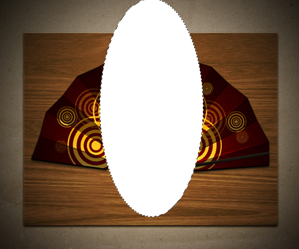 Now to complete the set of sticks, duplicate another sticks layer but now take it out from the "Sticks" group. Use the Elliptical Marquee tool (M) and create a circle from the center of the fan just like what we did in Step 19, create a layer mask and erase the parts you don’t need. The final effect should look like the one shown below. Rename this layer as "Line separate."