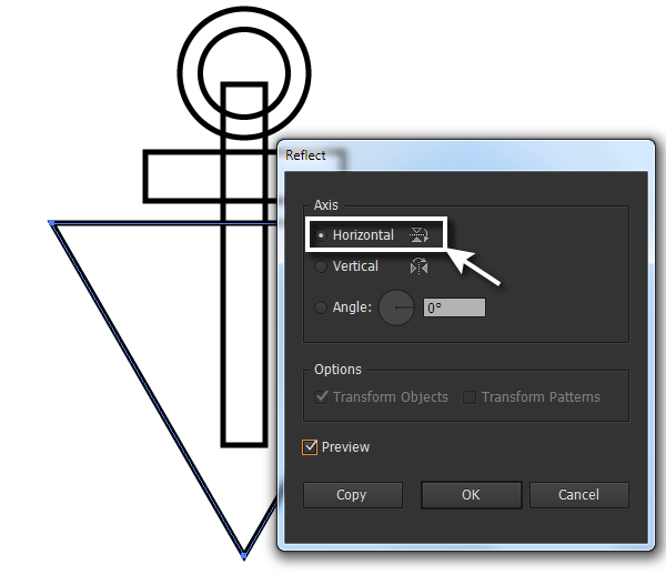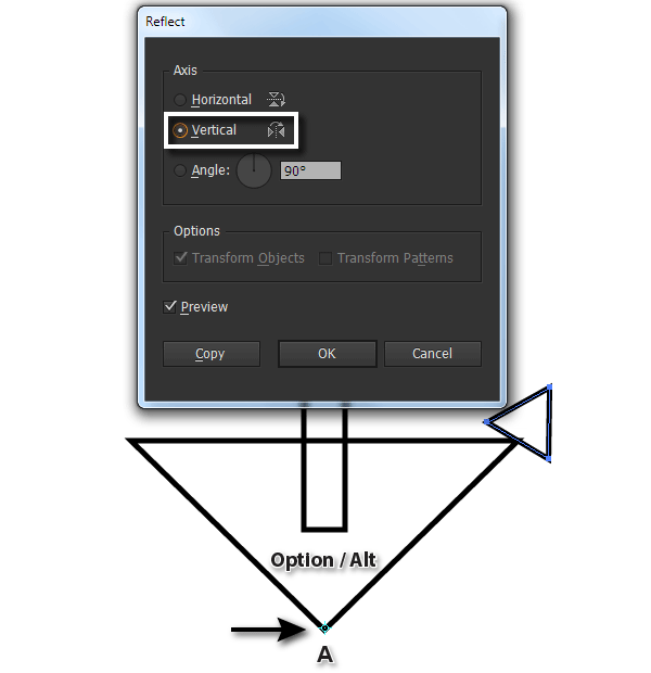 Take the Reflect Tool (O), hold Alt key and click at the point A. Choose the Vertical Axis, and then click on the Copy button in the dialog box.