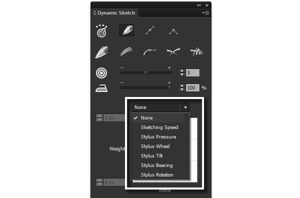 As with the Paintbrush Tool (B), we’re able to set the relationship between the variable stroke width and several parameters.