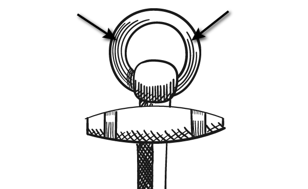 Not all the hatching should be done using straight-line segments. For example, on the anchor’s ring I’ve created arc-like strokes in order to convey the nature of the surface.