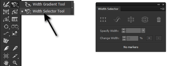 Take the next tool of WidthScribe, the Width Selector Tool, and open its panel (Window > WidthScribe > Width Selector panel).