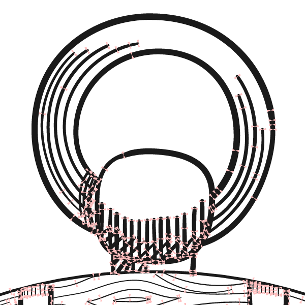 The Width Selector Tool is designed to select and work with width markers. Select width markers at the ends of paths of the anchor ring while holding Shift. Now press on the Taper Stroke button in the Width Selector panel. This sharpens or tapers the ends of the paths you’ve selected.