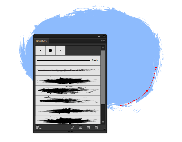 Now we’ll need grunge brushes. For this sketch, I’ve used free Illustrator brushes BEAT ‘EM UP. Choose the same color blue as above, but disable the fill and use this for the stroke color. Now take the Paintbrush Tool (B) and create strokes with the grungy brushes along the outline of the blue shape.