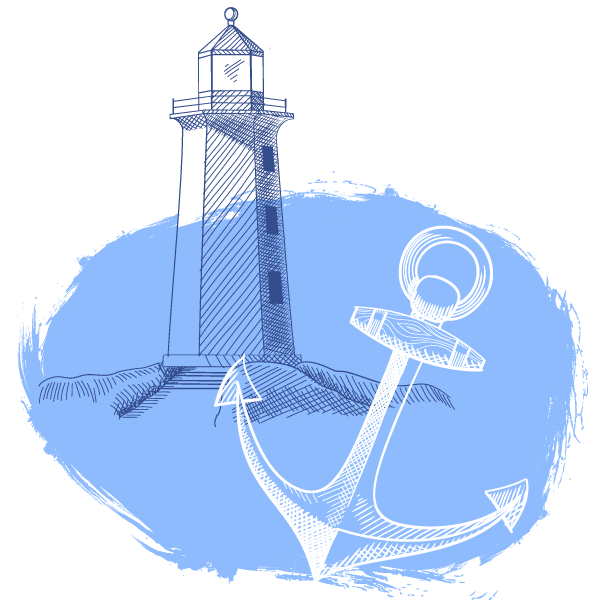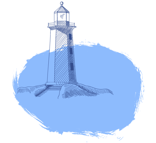 Recolor the objects of the lighthouse in a dark blue color, then place it on the blue background, as shown below.