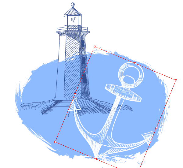 Recolor all the objects of the anchor in white and place it at the forefront of your composition. Incline the anchor to the right side, using the Selection Tool (V).