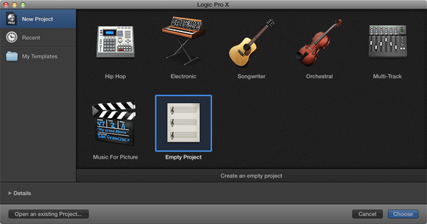 Open up Logic Pro X and create an Empty Project.