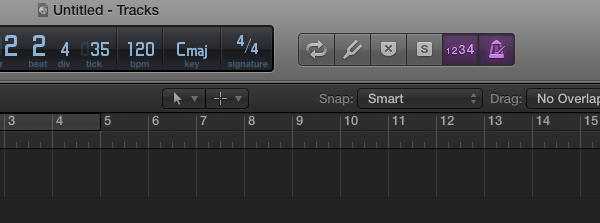 You’ll probably want to disable Count In and Click, which can be done by clicking their respective icons in the header of the window.