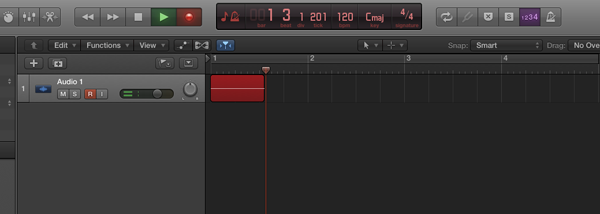 Once you’re all in place, have turned off the air condition and told everyone to be quiet, hit the red Record button, or type R on your keyboard. The playhead will start to move, and you can now begin speaking!