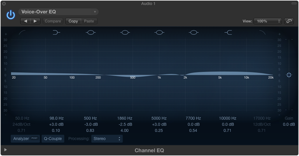 With this preset, my voice sounds slightly fabricated, which is not what is wanted with a voiceover. Have a listen:
