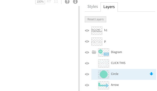 When the upload is complete you can click on the thumbnail of your PSD and it will open up in Project Parfait for you:
