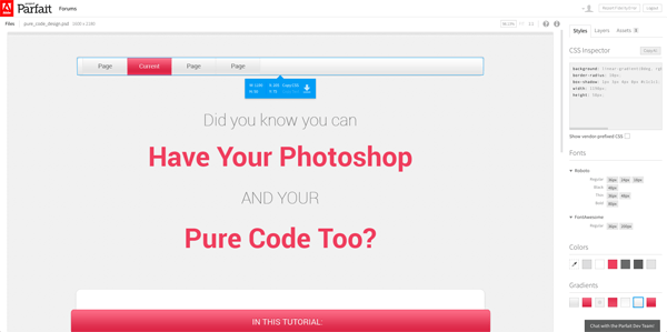 Project Parfait is a new tool from Adobe, currently in beta, which lets you open up any PSD directly in the browser to extract CSS, text and image assets from it. At the moment it only works on Chrome but Adobe plan to roll it out across all browsers as development moves on.
