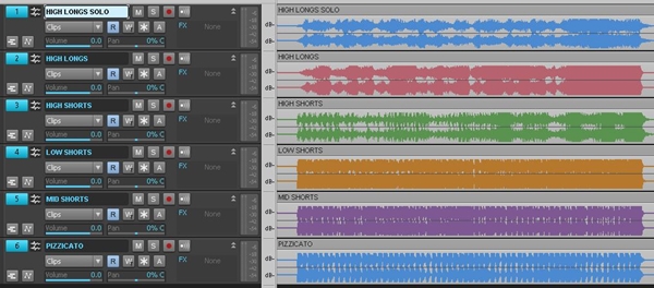A very common problem in mockups is where the samples themselves are exposed. That is, one sample library—that might not be of the best quality—playing alone with no other instruments to support it. In the real world, a string section playing by itself would work fine, but in the sampled world, if your samples are not of the highest quality, the performance and feel falls apart. There are numerous layering methods that can fix this: