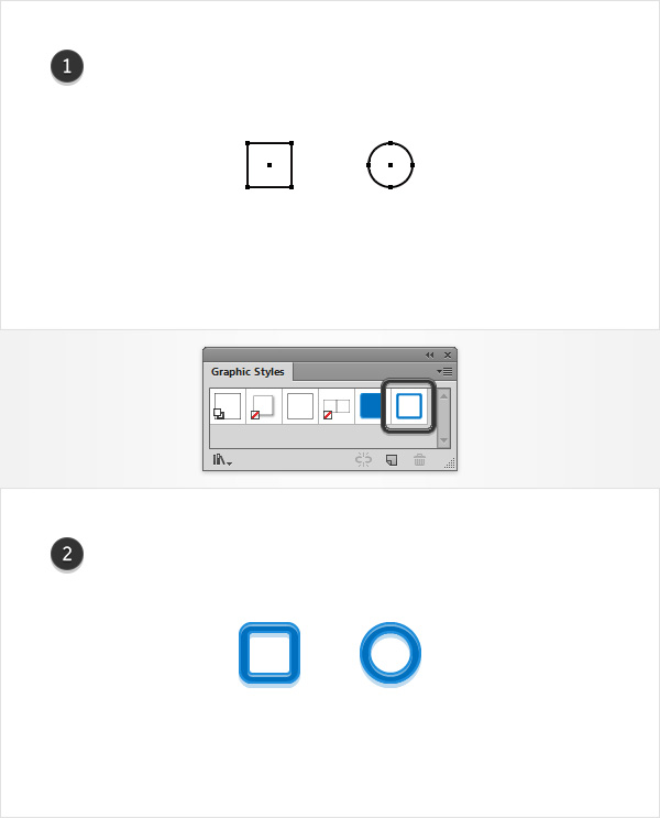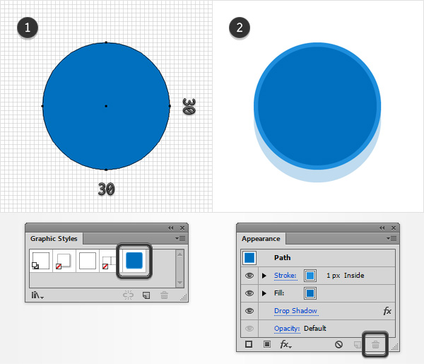 Using the Ellipse Tool (L), create a 30px circle and make sure that it stays selected. First, add the “blue” graphic style.