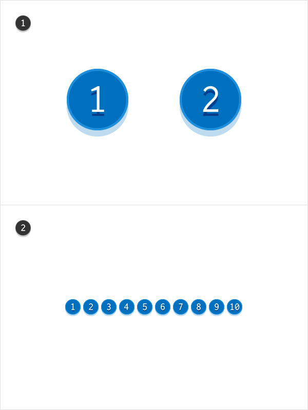 Duplicate your group with the blue circle (Control-C > Control-F), select the copy and drag it several pixels to the right. Focus on the copy, select the existing piece of text and simply replace the “1” with a “2“. Repeat this technique and add another eight group copies as shown in the second image. Don’t forget to replace the text.