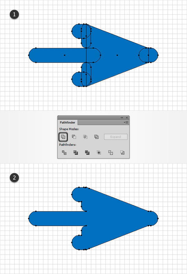 Reselect the two shapes that make up your pointer and click the Unite button from the Pathfinder panel.