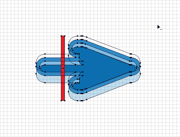 Disable the Snap to Grid (View > Snap to Grid). Reselect your blue pointer shape and make two copies in front (Control-C > Control-F > Control-F). Select the top copy and move it 1px down using the down arrow button from your keyboard.