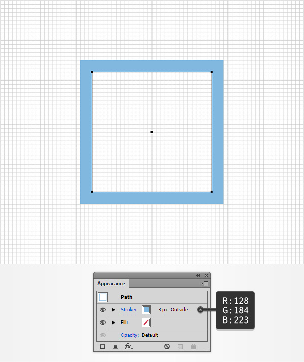Using the Rectangle Tool (M), create a simple square and make sure that it stays selected. Focus on the Appearance panel, remove the color from the fill and select the stroke. Add your “colorTwo“, set the Weight at 3px and check the Align Stroke to Outside button from the Stroke fly-out menu.