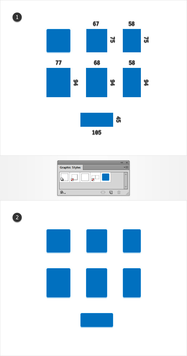 Using the Rectangle Tool (M), create a set of rectangles as shown in the following image. Make sure that all these new shapes are selected and simply add your “blue” graphic style.