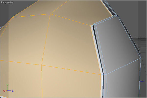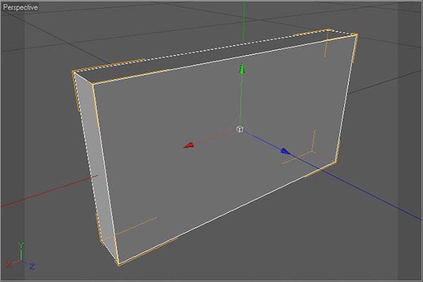 Now, use Extrude Inner again, but this time use a negative offset value to essentially scale up the polygon so that it sticks through the sides of the box. With that done scale the selected polygon down on the Y-axis so it’s only sticking through the sides and not the top and bottom, and then Set Selection.