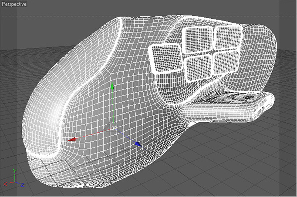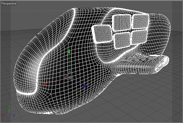 Now we need to group the displays group along with the main body, so select our new null group object, then the main body object and hit Alt-G again. With our new group null selected, we can add all of the objects to HyperNURBS by going to Objects > NURBS and then Alt-Clicking HyperNURBS. Now select the HyperNURBS object from the objects list, and in the Coord. tab of it’s Attributes, change the S.x, S.y and S.z values to 3, 6 and 6 respectively to get the following result. And with that the ship is complete!