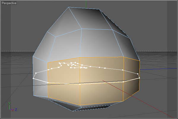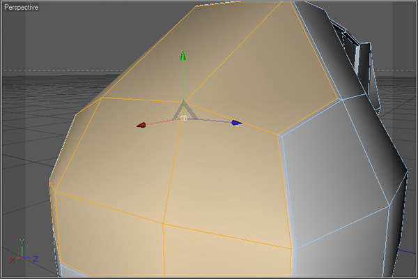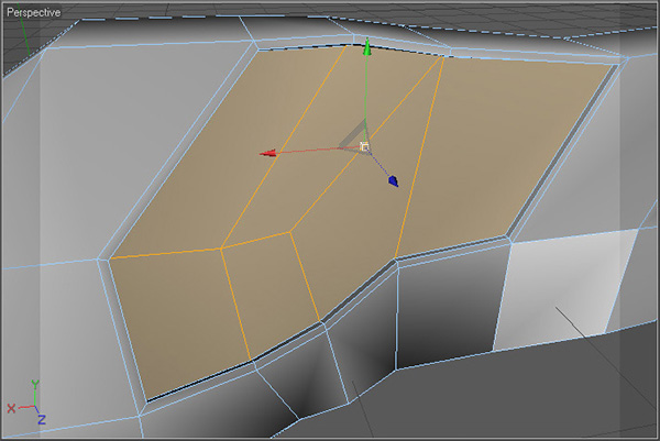 Select these 9 polygons and use the Extrude Inner tool to inset them as shown.