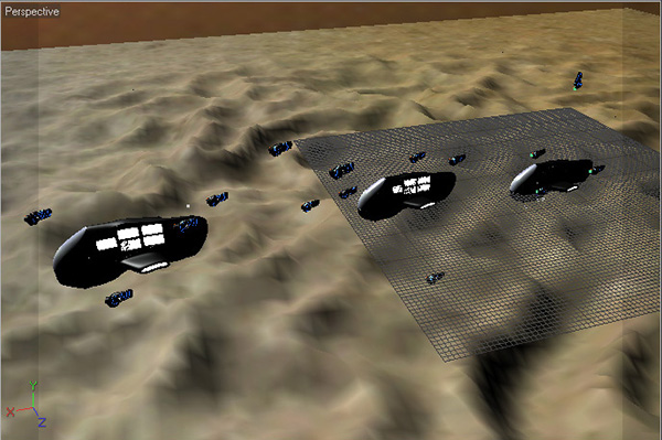 We’ll now finalise the layout of our scene. Position the Display ship and the Camera ships around it. Make sure that the cameras at the very front of the camera ships have good points of view, as this’ll become important in a second!